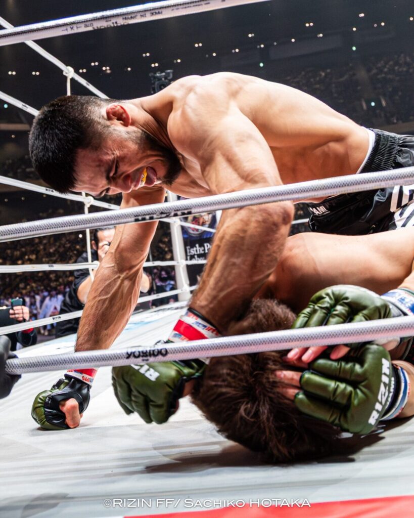 結果は、シェイドゥラエフ選手が1ラウンド2分54秒、バックマウントからの容赦ないグラウンド&パウンドによる“凄惨なTKO勝利”。王者は圧倒的な強さで2度目の防衛に成功し、プロキャリア通算**16戦16勝16フィニッシュ**という、パーフェクトレコードを維持しました。朝倉選手は、わずか3分足らずでタイトルへの夢を打ち砕かれることとなりました。